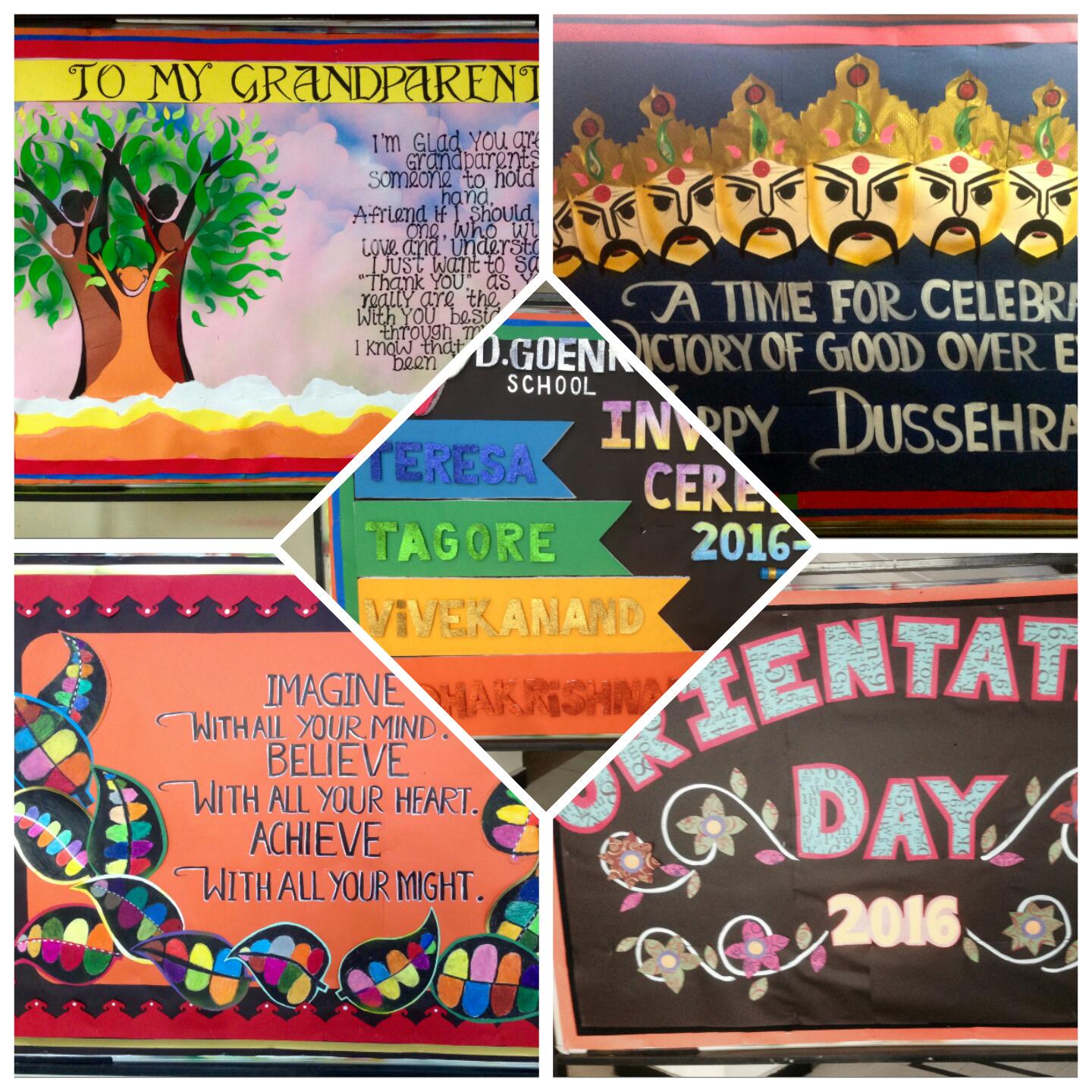 I use my bulletin boards as a teaching tool not just as decoration. For each event such as PTM meetings, sports, festivals or other school activities i try to present them through my art. Here is the collection of me and my colleagues efforts.